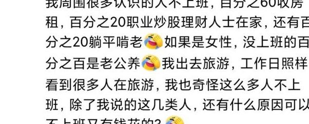 出于好奇,有人询问了那些不上班但一直在旅游或者有富裕生活的人们,他们为什么还要选择不上班呢?他们究竟有什么原因可以不上班但又有足够的财富来满足自己的需求呢?