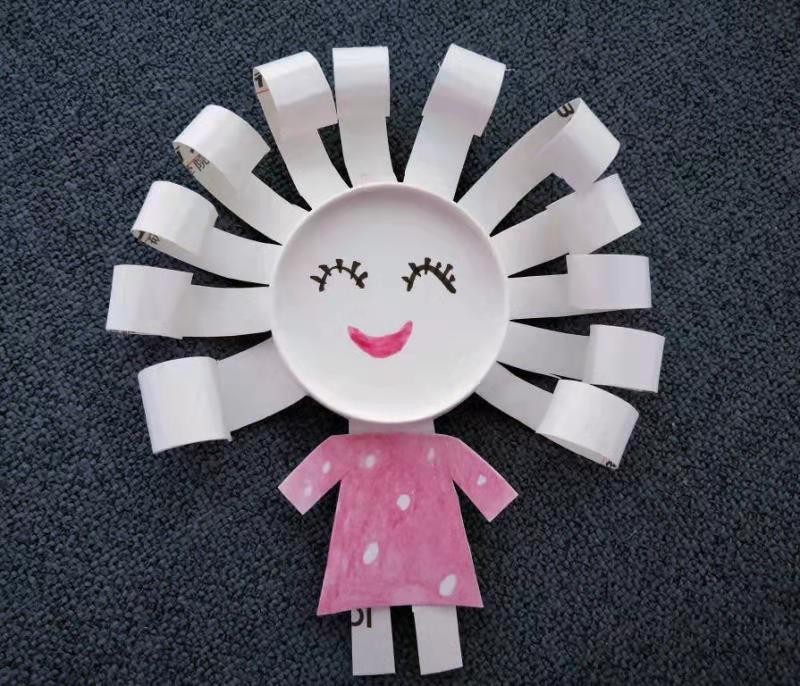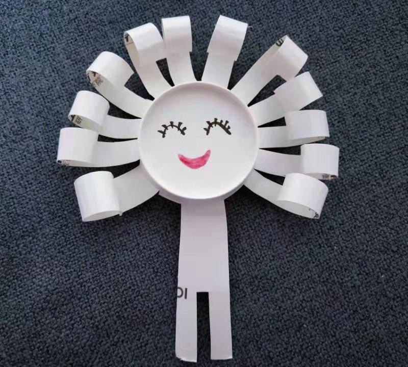 纸杯娃娃就完成啦!我们可以跟爸爸妈妈一起多做几个,就像好朋友一起在玩耍!看这个可爱的宝宝亲手做的纸杯太高兴了!