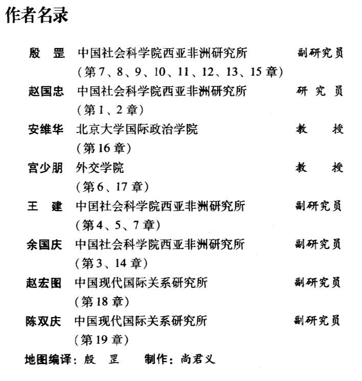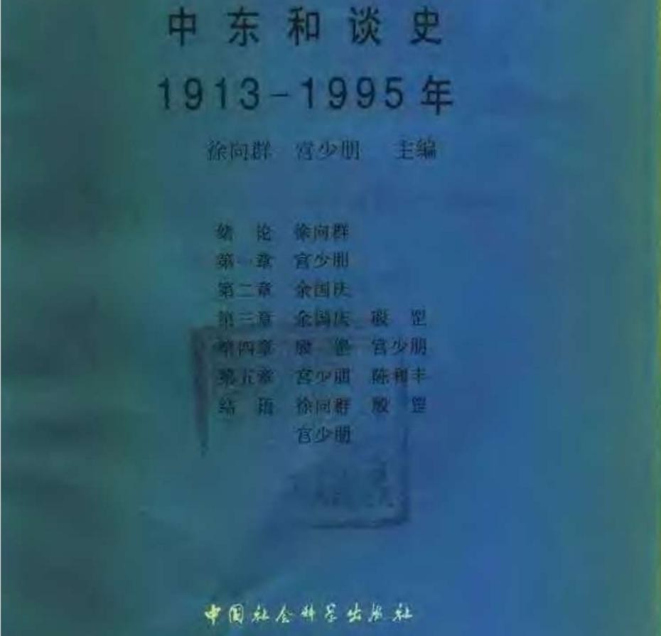 《中东和谈史:1913-1995》初版于1998年,由他人主编,殷先生参与了写作,公开出版信息中找不到他的名字。下载到的原书PDF版显示,他参与撰写了其中两章和结语。
