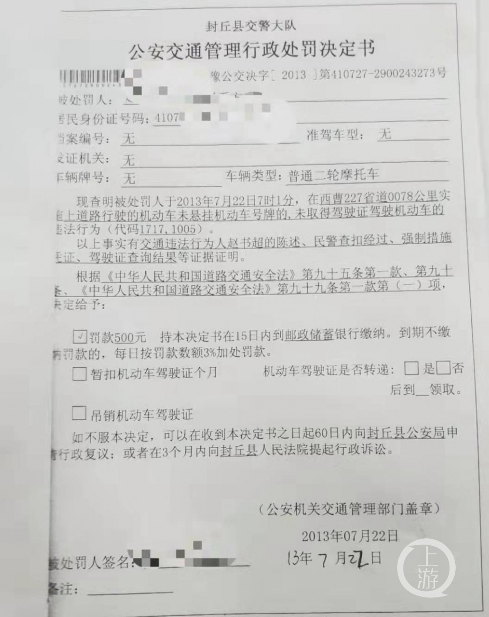河南新乡交警摆乌龙:拘留无证驾驶者弄错人,让人背了8年黑锅