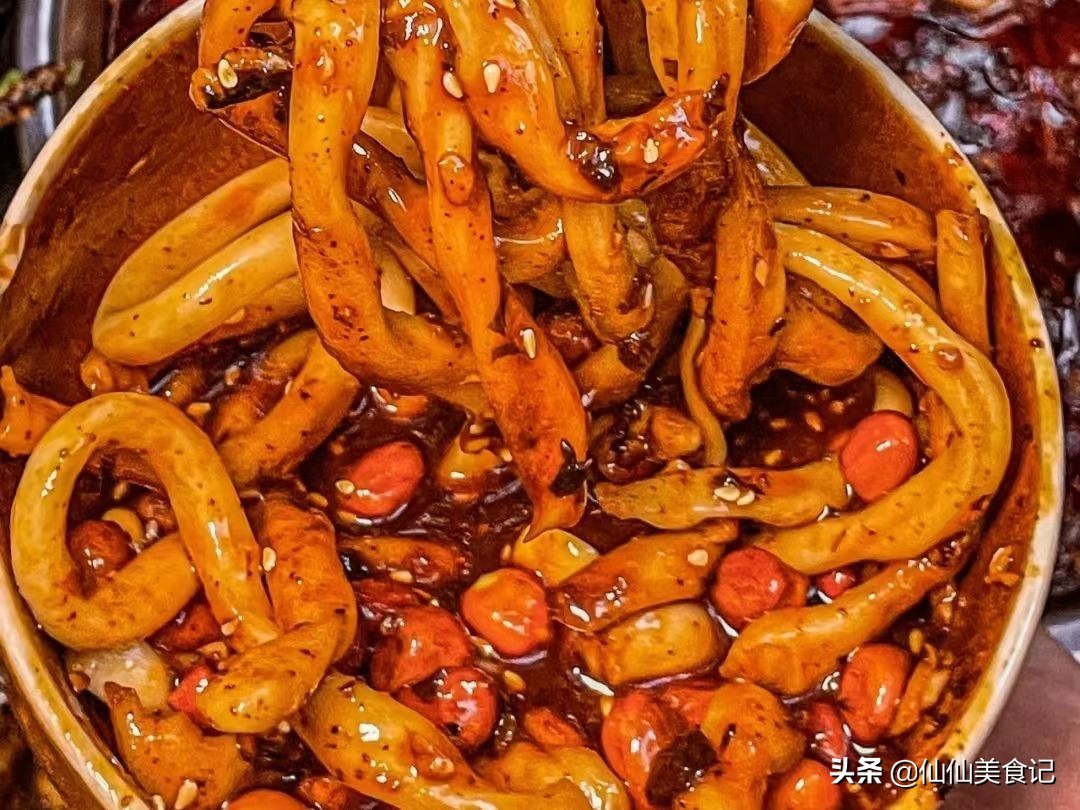 大家听说过麻辣兔头吗?据说成都人一年要吃掉3亿个兔头。吃过的人都知道,麻辣兔脑壳味道油浸浸的,就是人间美味,特别是麻辣味的红油浸泡得特别入味,还有花生米在上面,香得很,酱料卤味,也超级入味。