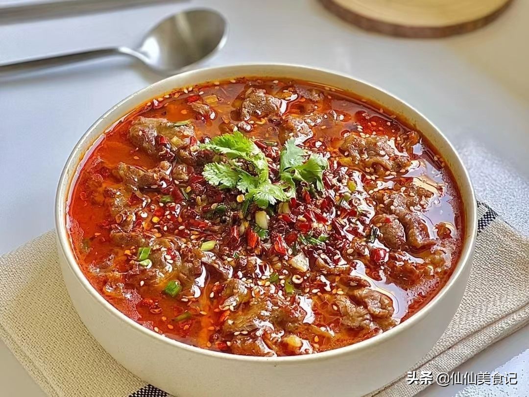 来四川绝对不能错过的水煮牛肉,牛肉紧实不缺嚼劲,回味很足,辣而不燥,制作工序简单,但味道真的超绝,极致的麻与辣,但又不局限于麻与辣,牛肉鲜香滑嫩、味厚适口。一盘水煮牛肉,直接吃出川味火锅的风味,鼻尖直冒汗。