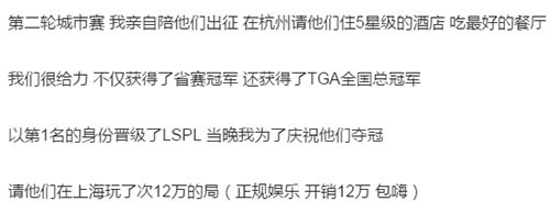 董小飒在文章中说到,当年俱乐部刚建队时在省赛第一轮就被淘汰,选手们哭着回去,董小飒好好安慰并且带着这群人在半年后以TGA全国总冠军的身份晋级LSPL。那时候选手住五星级酒店,吃最好的餐厅,庆祝夺冠一晚上就花了12万。