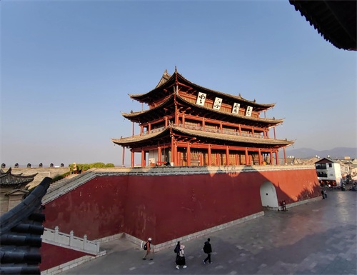 二〇二三年三月一日傍晚时分,我们一到云南建水,迫不及待地放下行李就走进了建水古城。夕阳下,我们在青石泛光的街道上漫步,前方蓝色的天空下,一座红墙灰瓦的辉煌建筑映入眼帘,让我们觉得恍若来到了京城。