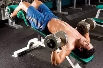 1、全身放松,下仰身体平稳卧在哑铃凳,头部和后背靠紧长凳,保持挺直;