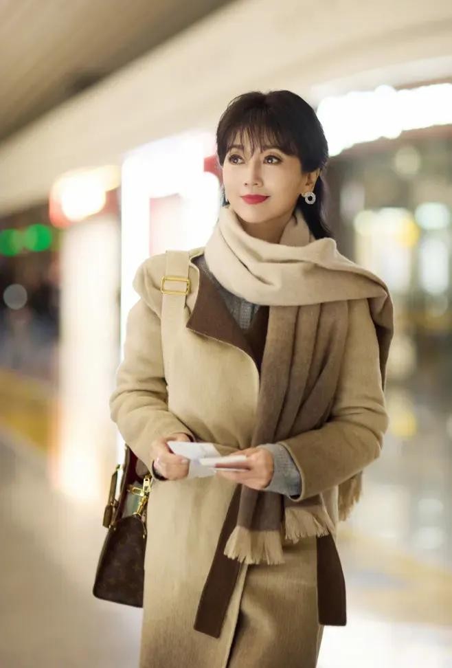 赵雅芝美图赏析:卡其色大衣展现大气高级感