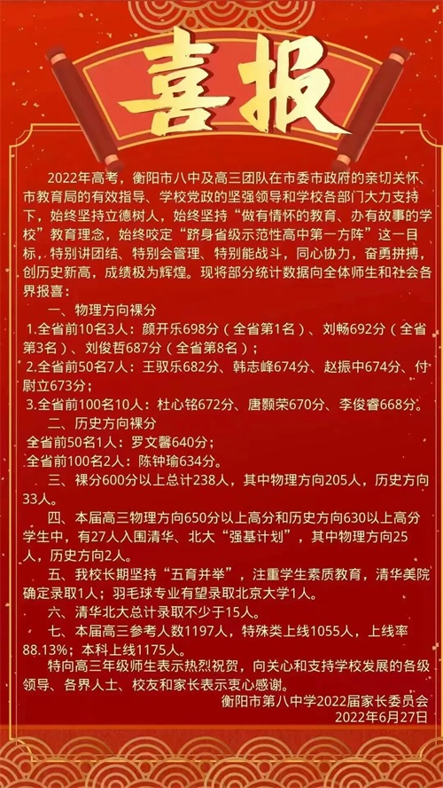 衡阳八中高考喜报