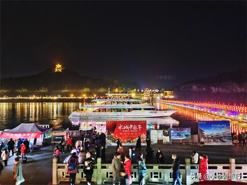 走到江边还可以乘坐游船,游船旁边的浮桥只有春节期间才有,春节过完桥也会被拆掉,浮桥过去就是南津关古镇。