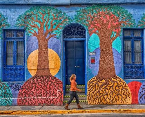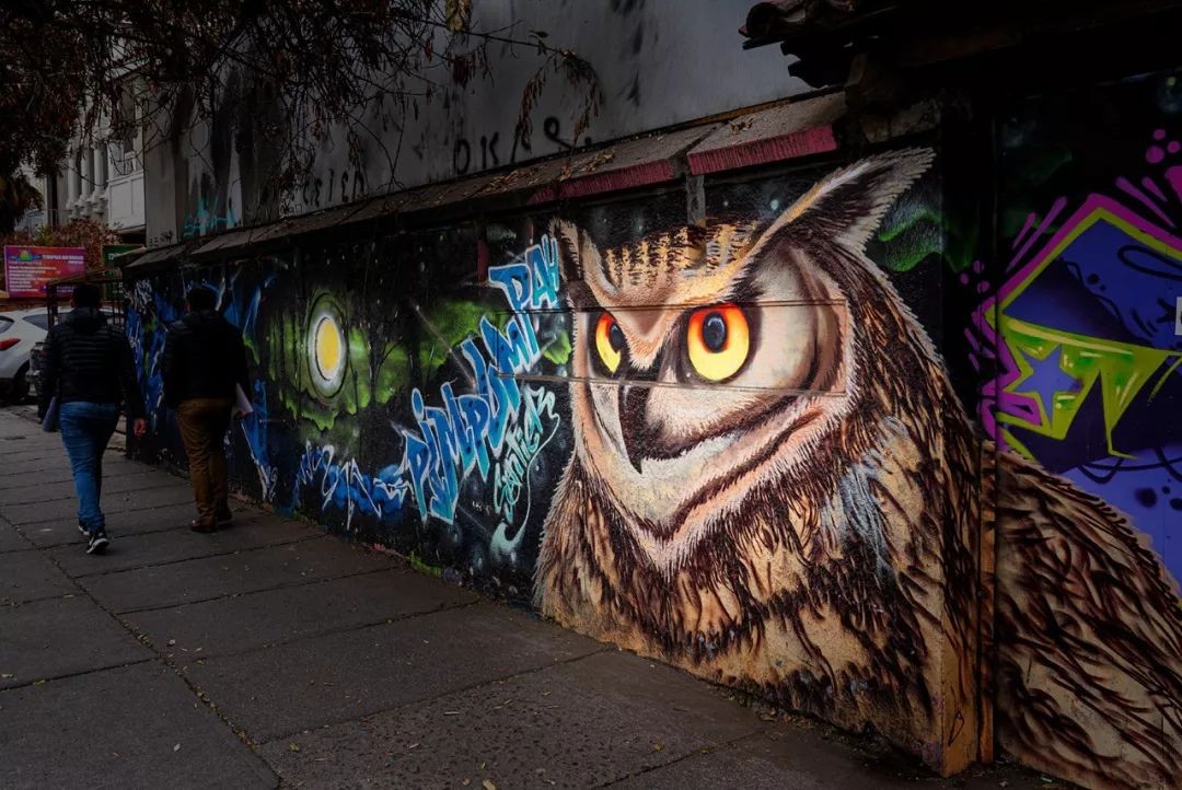 离开奥希金斯大街,从市中心一直往北走,走过一座大桥,路两侧的景色马上变了风格,这就是圣地亚哥有名的艺术区——Barrio Bellavista社区。