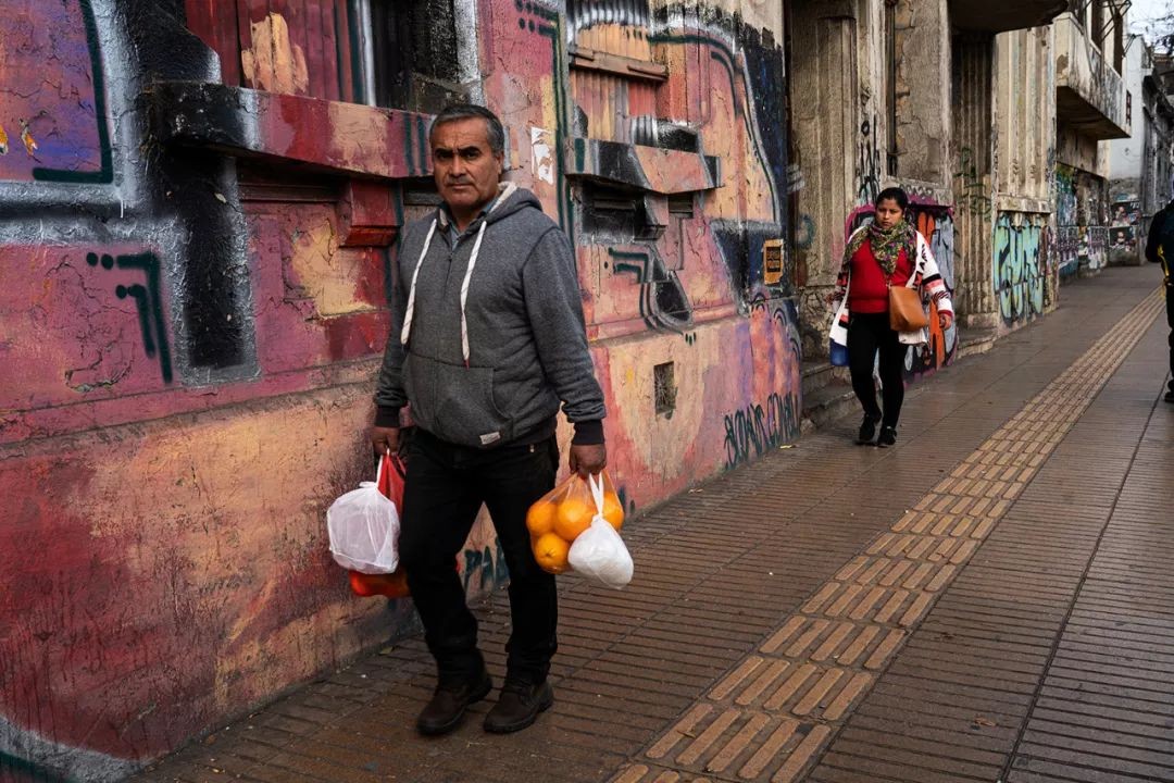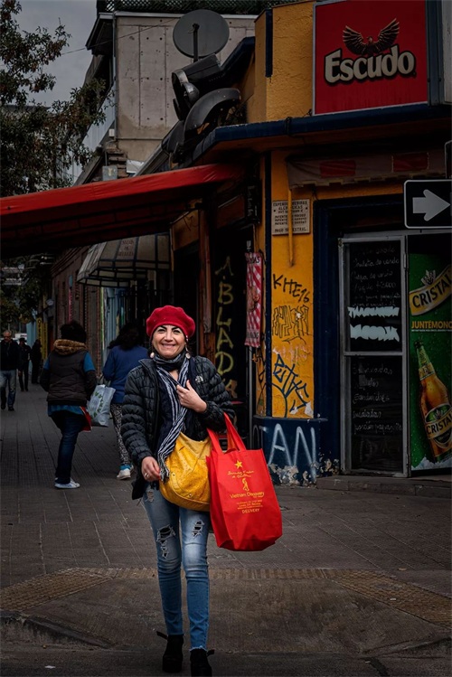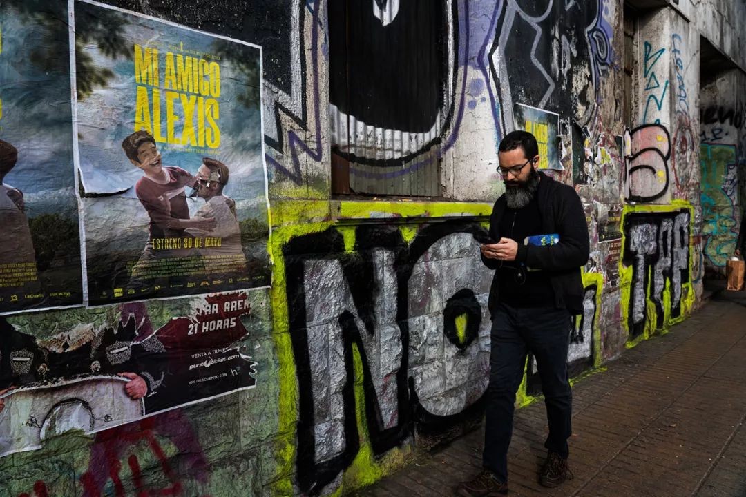 Pierinne Mendez是圣地亚哥一个电台的记者。在艺术区街头,她看到我拍照,高兴地冲我挥手,并且走过来热情洋溢地拉着我聊了起来。“我记得你去年秋天的模样,灰色的贝雷帽,平静的心”(巴勃鲁·聂鲁达)。Pierinne,你的笑容在凌乱中生辉!