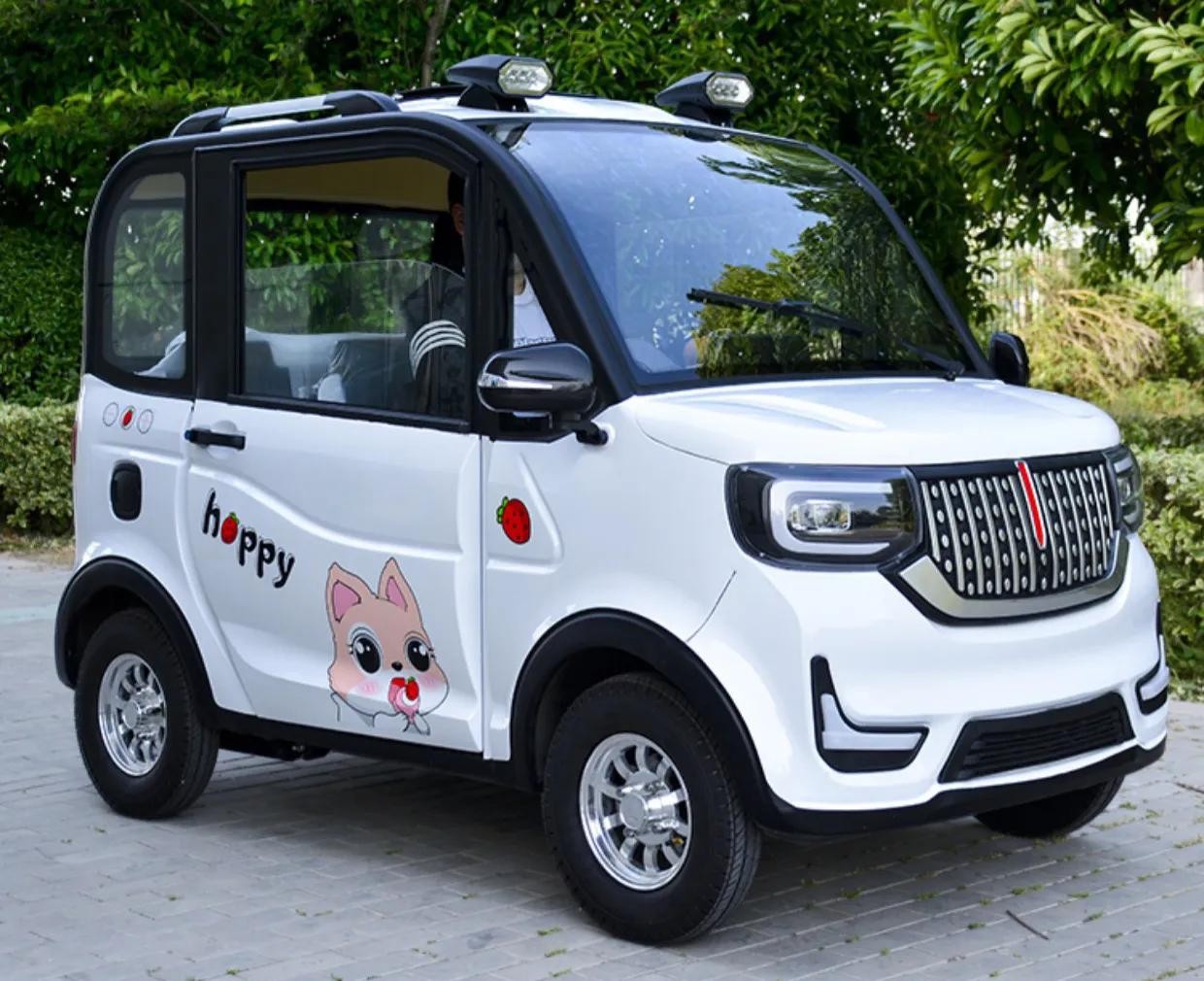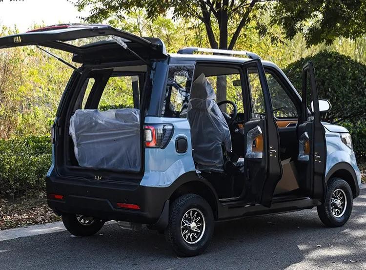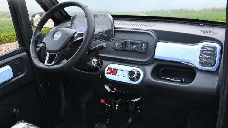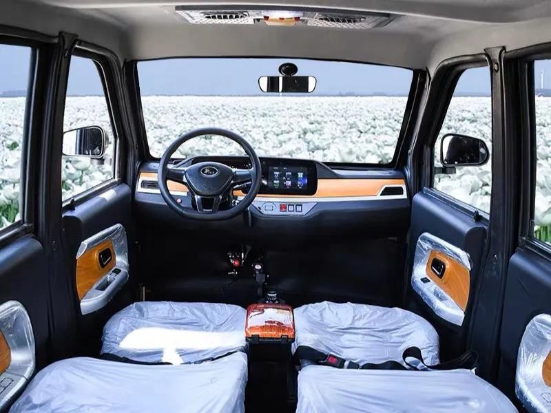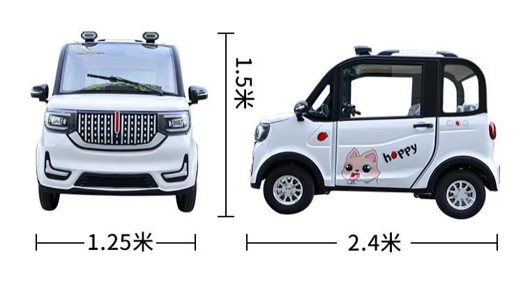 外观设计:对比上一款,这款车车身有印花,所以从外观上看是更加年轻化一点。但这辆车和低价的老年代步车都有一个缺点,那就是整体造型更加倾向于电动三轮车,最明显的特征就是车顶的行李架以及高射大灯,这一点就瞬间拉低了四轮车的档次。整车尺寸是2400*1250*1500mm,同样是两门四座设计。