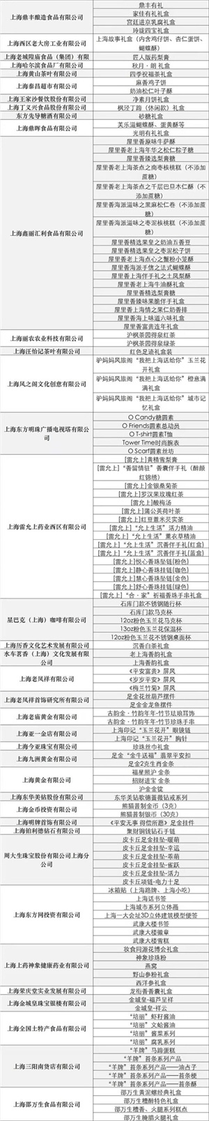 附:245种“上海礼物”和59家优选店铺名单