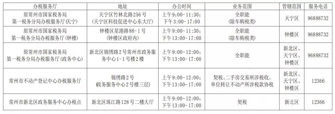 常州国税、地税合并后,办税地址、电话一览表来了!