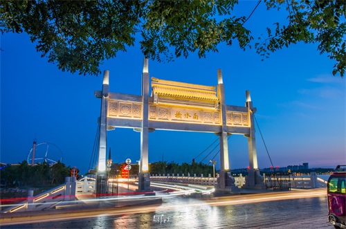 南城门外是与南水桥相连,走过桥便是一处“连岛”,可提供休闲游玩、游船、餐饮等等一系列的设施,再过南关街,便可到达聊城著名的“摩天轮”,当然这摩天轮的夜景才最治愈,一定不要错过哟。