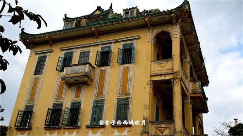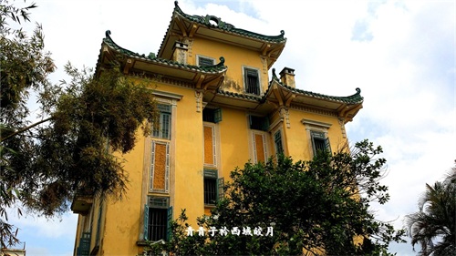 毓培别墅,以园主乳名“毓培”命名,为纪念爱妾谭玉英而建,四层分别为仿中国古式、日本寝式、意大利藏式、罗马宫式。地面都巧妙地构筑四个“红心”连在一起的圆案,表示园主对四个夫人心心相印,这里,或许有园主与爱妾的浪漫爱情故事吧,虽好奇,但不得而知。