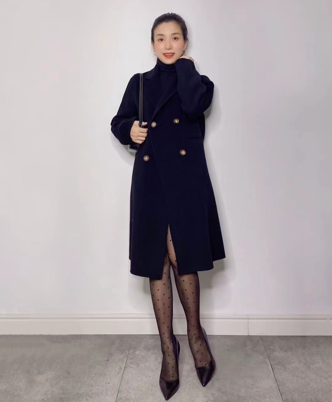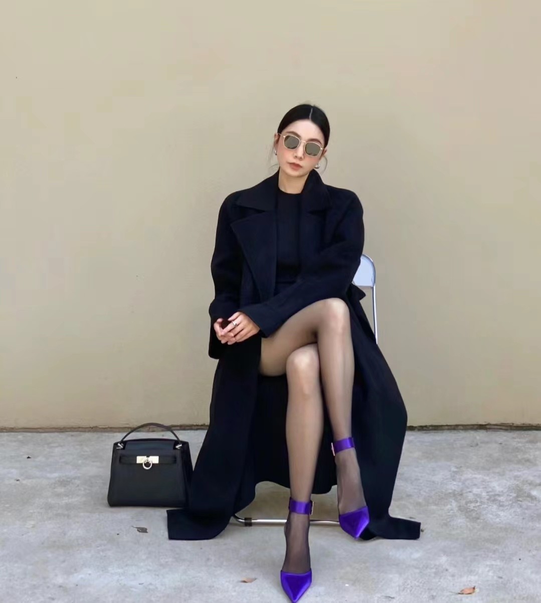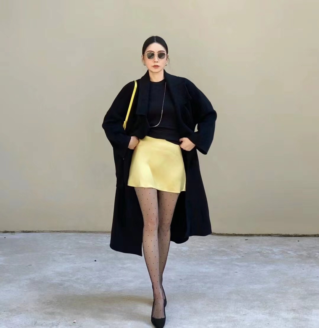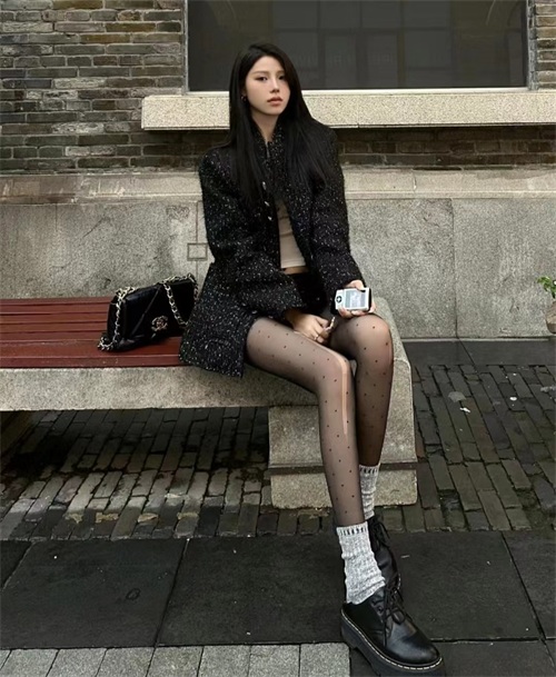 深色丝袜在视觉上具有显瘦效果,能让腿部线条更加修长。同时,深色丝袜给人一种神秘、优雅的感觉,适合搭配冬季的深色系服装。