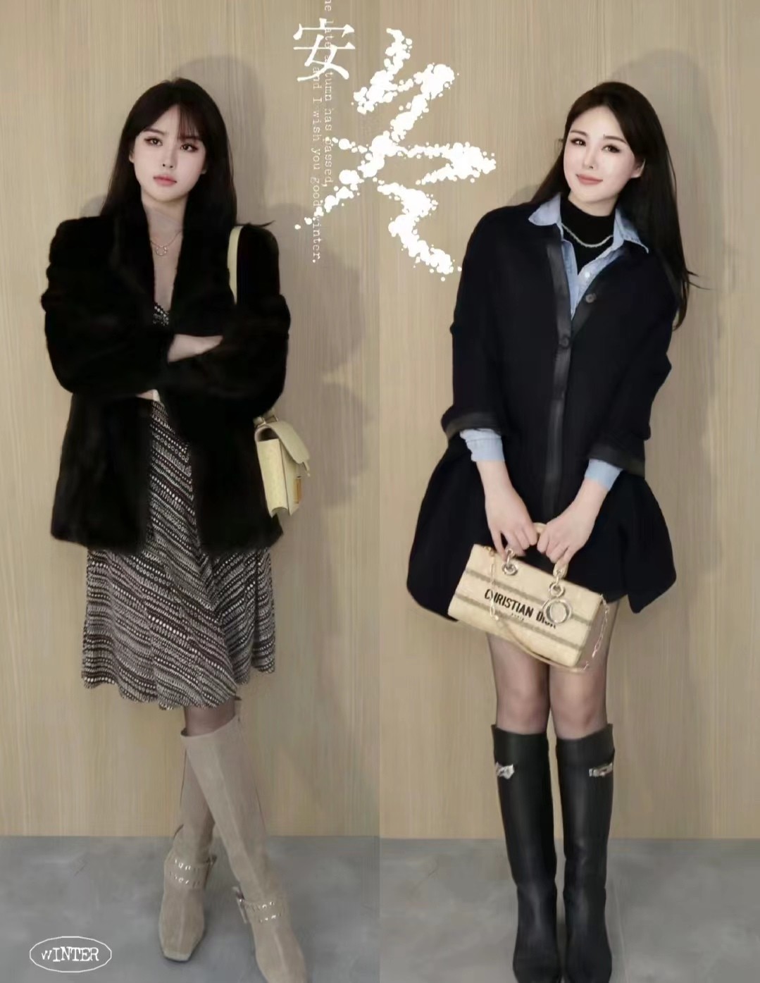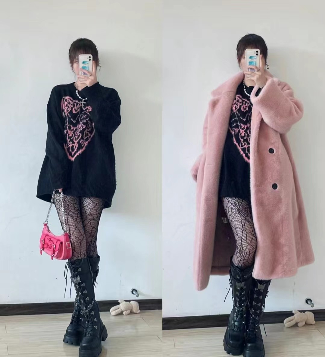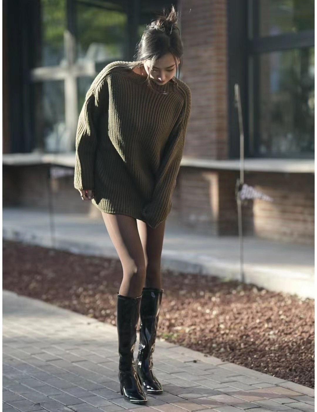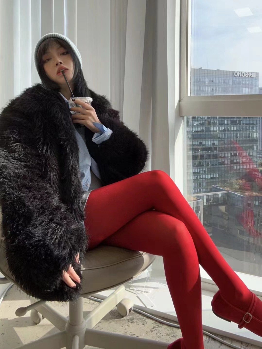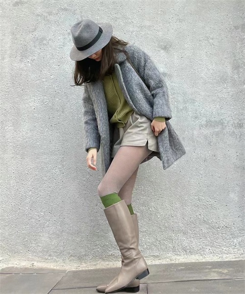 虽然冬天是个色彩单调的季节,但是过于鲜艳/花哨的丝袜会让整体造型显得过于突兀,不够协调。