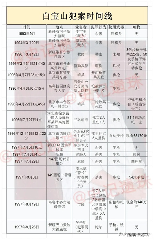 白宝山案发生在上世纪90年代,他在1996年到1997年的一年多时间里在北京、河北、新疆等地袭击了多名军警,还抢到了当时解放军最为先进的制式武器——81式自动步枪。