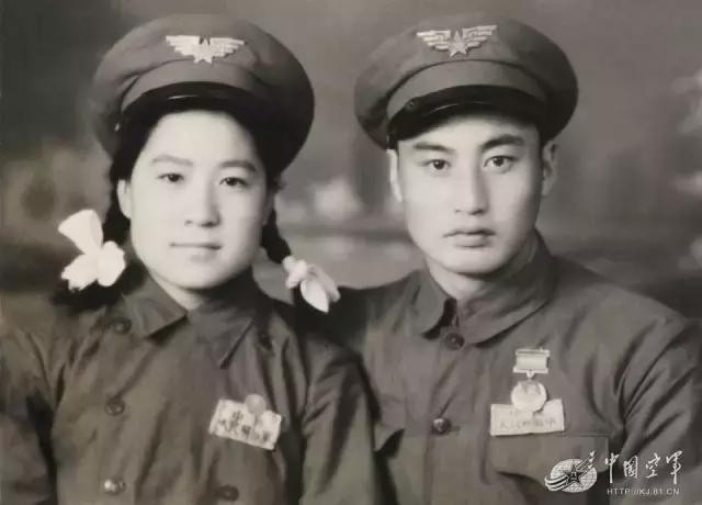 ✦空军战斗英雄刘玉堤和夫人贾兆泉的结婚照,二人均身着50式空军军服。