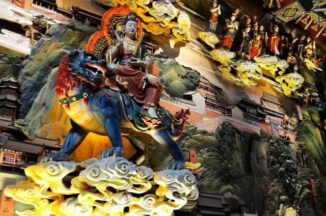 - 文殊道场区:位于景区中间主轴线上,是中心区和文殊文化旅游主要目的地,有不二法门、智慧之门、文殊广场等景点,重要宗教节日可举行大规模活动.