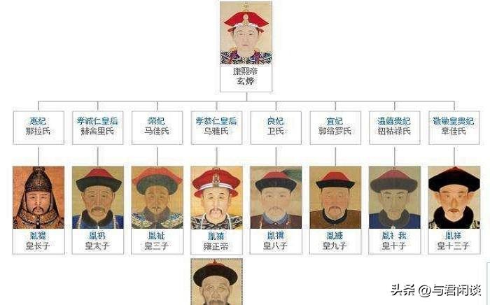 康熙算得上是一代枭雄,年轻时就智取鳌拜,平定三藩,统一台湾;三征葛尔丹,也算是一代帝王了。康熙生养能力也很强,他一生有三十五子二十女,其中有二十四子参加了序齿(意思为按年龄大小排序)。