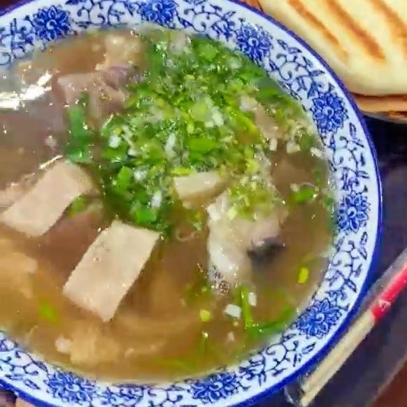 鲜嫩的牛肉片、嚼劲十足的牛头皮、浓郁的牦牛大骨汤组成了风味独特的牛杂汤,一口下去辛辣的胡椒与清新的蒜苗在味蕾绽放美妙滋味,这是西宁人早餐桌上不可或缺的美食。