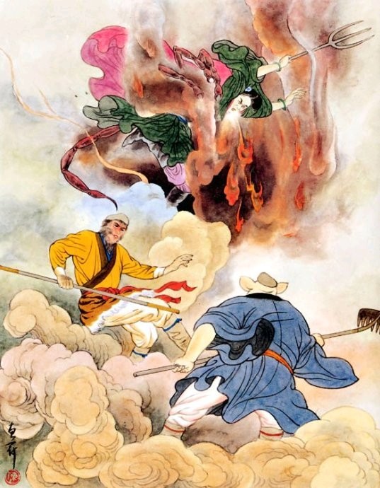 PS:关于这一战,有人说孙悟空、猪八戒占了上风,理由是后文中孙悟空说“见我破了他的叉势”,但这既没有旁白佐证,赞诗中也看不出蝎子精下风,极有可能是孙悟空为挽回面子找的说辞,毕竟这是他第一次输给女妖精。另外,蝎子精打斗一般是先用鼻子出火,口中喷烟,然后变作多手,掩盖自己的身躯,让人看不清她的身躯和动作,倒马毒速度极快,加上用烟火多手遮掩自己,迷惑敌人,一般都不知不觉就被倒马毒蛰了,孙悟空的眼力都看不清蝎子精的详细动作,看不出她用什么蛰的自己,莫名其妙的被蛰了。