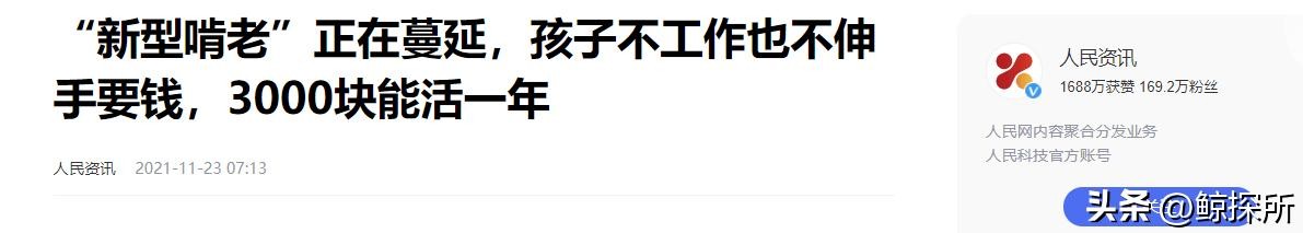 人民资讯 《“新型啃老”正在蔓延,孩子不工作也不伸手要钱,3000块能活一年》2021-11-23