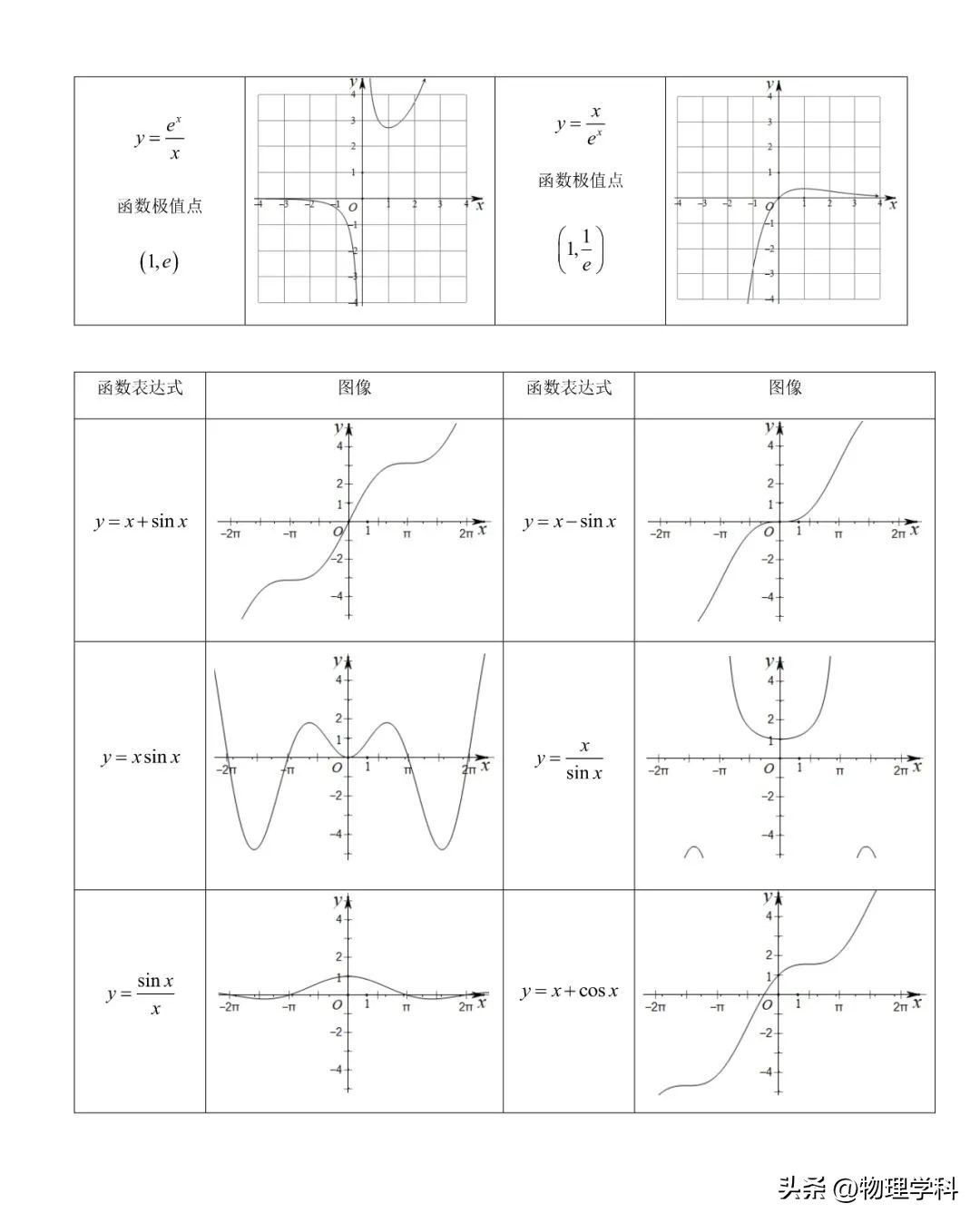 高中数学常用特殊函数图像(66个)