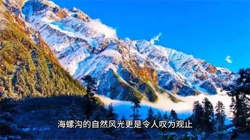 海螺沟的自然风光更是令人叹为观止,这里有原始森林、瀑布等美景,还有世界上最可观的现代冰川。在这里可以感受到大自然的魅力,体验到人与自然的和谐共生。