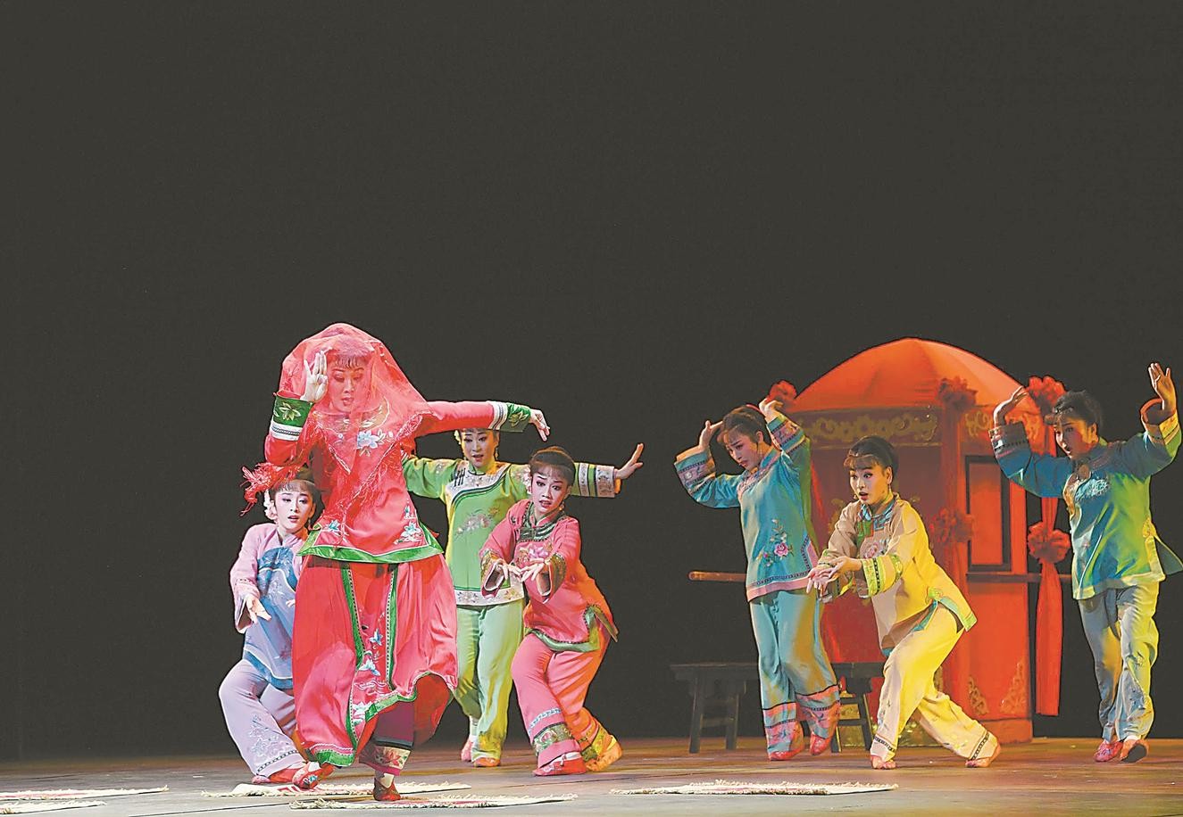 12月7日,《徽州女人》演出结束,韩再芬向观众鞠躬谢幕。