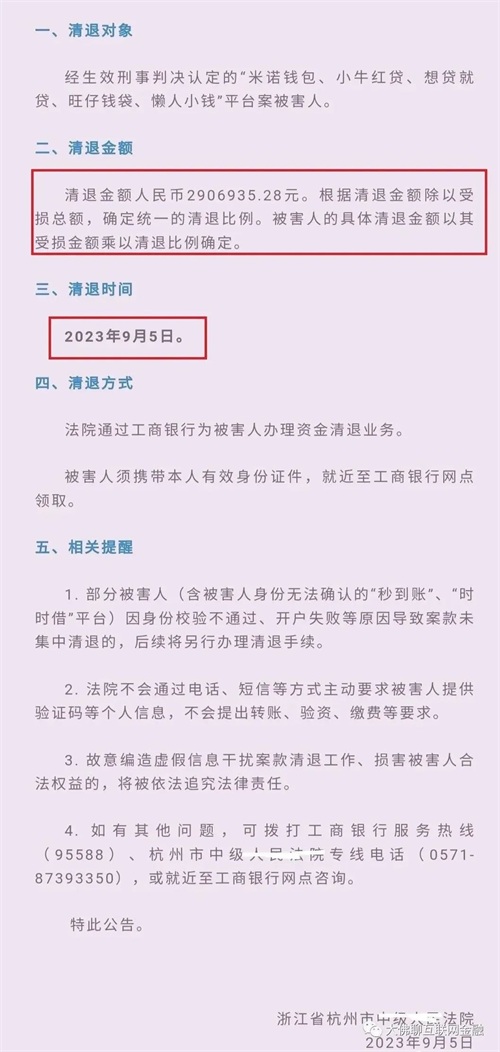 清退方式:委托工商银行为被害人开设电子账户,法院执行时会将清退资金汇入该账户。