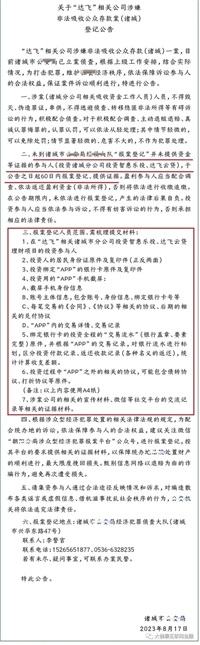 2023年8月17日,关于“达飞”相关公司涉嫌非法吸收公众存款案(诸城)登记公告发布。