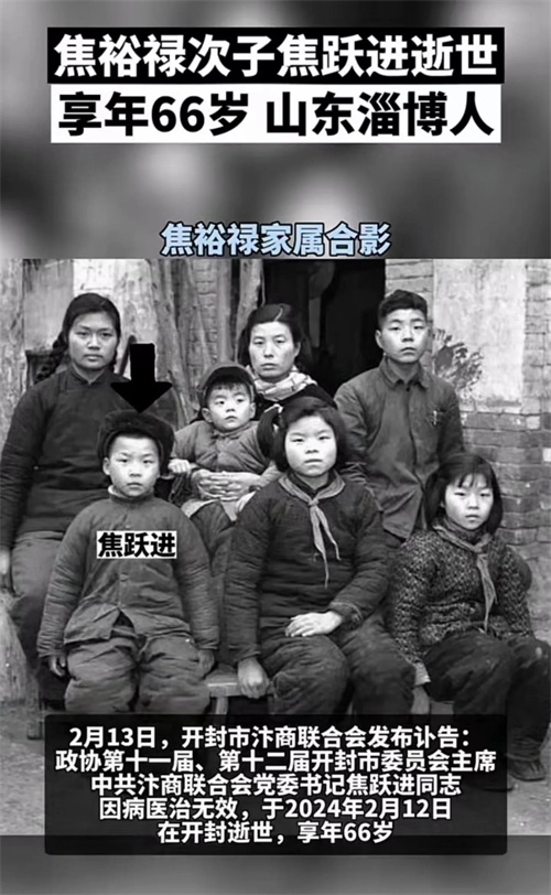 焦裕禄次子焦跃进,以父亲为榜样,投身政坛,现已离世,享年 66 岁。他是焦裕禄家族中唯一从政之人,来自山东淄博,深受其父影响。他在兰考县东坝头乡、杞县、开封市政协等岗位上,始终秉承父亲的信念,全心全意为人民服务,为地方发展尽心尽力。