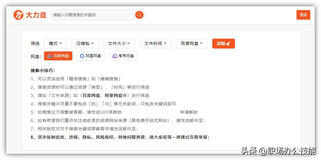 大力盘的使用方法非常简单,只需要在搜索框里,输入想要查找的电子书书名即可。筛选的类型选择文档,里面会有比较多的关于这本书的资源,主要来自3个网盘。