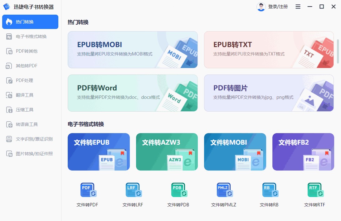 电子书的格式是非常多的,平时我们下载了各种类型的电子书,有些格式无法打开阅读。我们可以借助迅捷电子书转换器,选择【文件转PDF】功能,通通转换成PDF格式,不仅便于保存,查看也很方便。