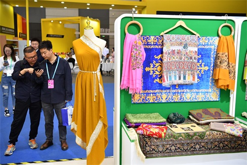 9月22日,观众在2023欧亚经济论坛经贸合作博览会暨中国(陕西)进出口商品展中亚五国馆内参观。 新华社记者 邵瑞 摄