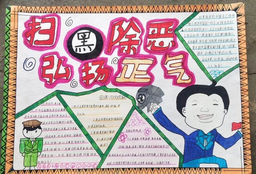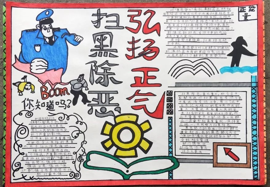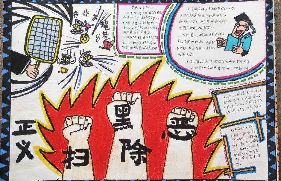 “扫黑除恶”,孩子们有话说,看他们的手抄报