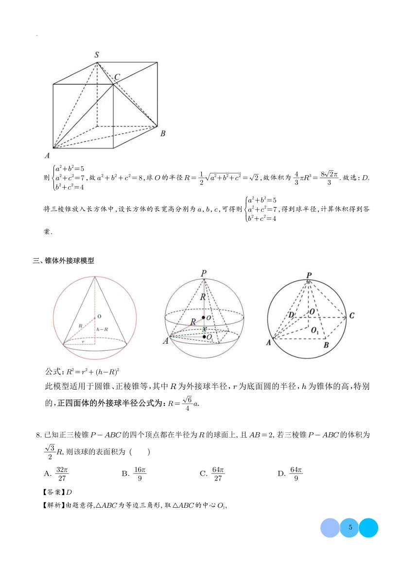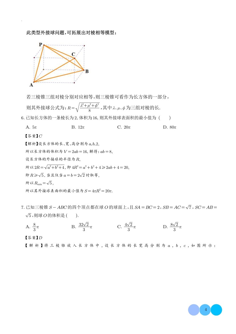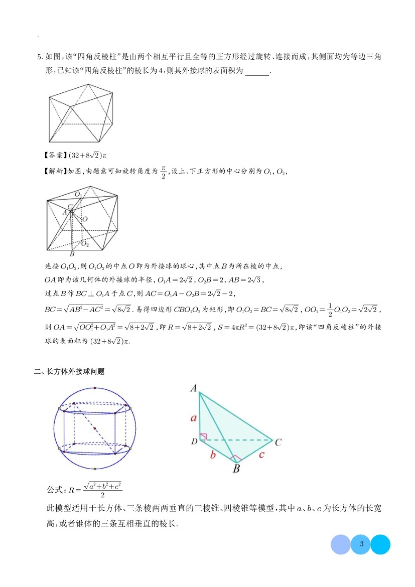 高中数学立体几何微专题外接球问题