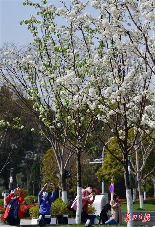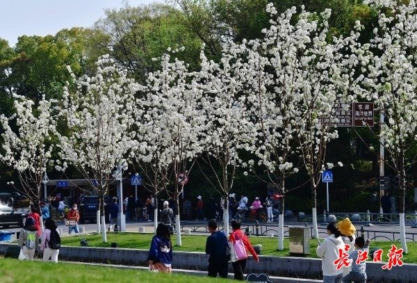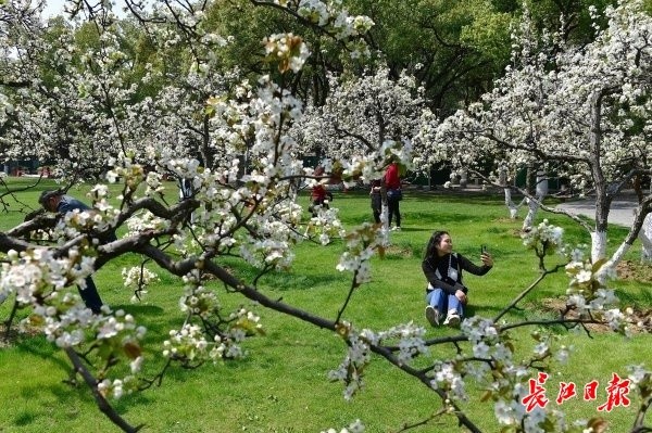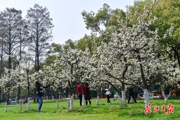 3月15日,武汉市东湖风景区梨园广场,20多株豆梨满树白花,让前来游玩的游客眼前一亮,纷纷驻足观赏。一位女士惊喜地说:“东湖梨园原来真的有梨花。”