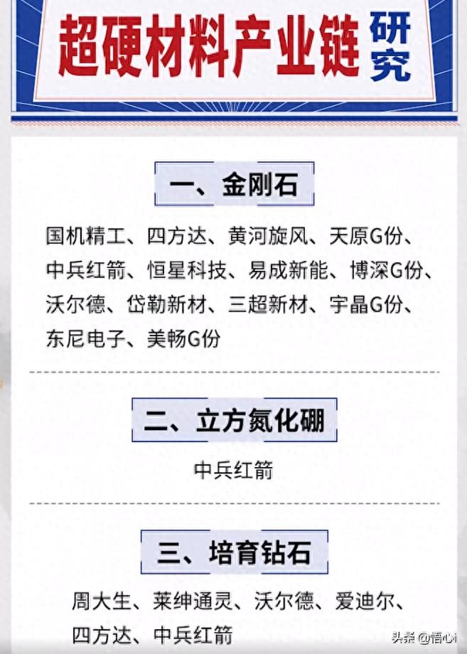 已经呢替代了天然钻石,成为超硬材料的绝对主角,到2030年,培育钻石的量产规模呢将超过1000万克拉,但技术的壁垒非常高,具备这些工艺的上市公司并不多;关于超硬材料产业链呢我放在文章下方,大家可以保存下来,慢慢研究