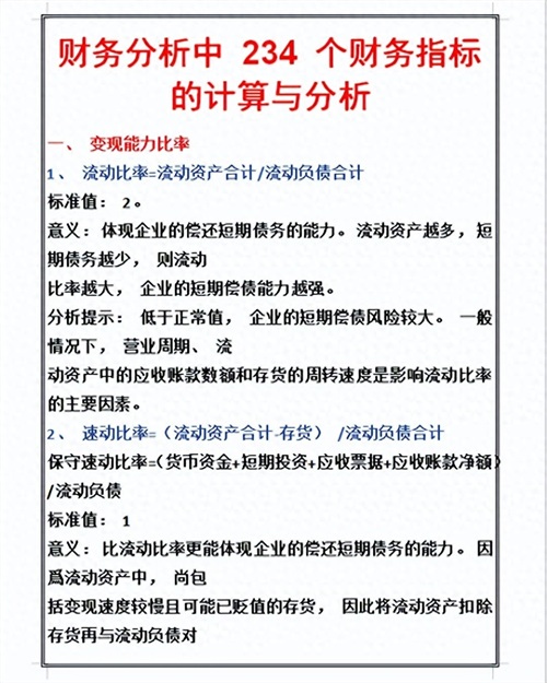 会计必备的234个财务分析指标!公式、计算、分析,一步到位!