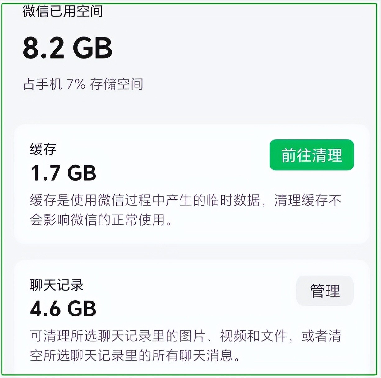 手机微信可以吃内存的大户,在手机微信“我”的页面,点击打开“设置”按钮,再点击打开“通用”选项,然后找到并打开“存储空间”,从这里点击“缓存”后面的“前往清理”按钮就可以清理微信的缓存数据了。再点击“聊天记录”后面的“管理”按钮,就可以对手机微信的聊天记录进行清理了。