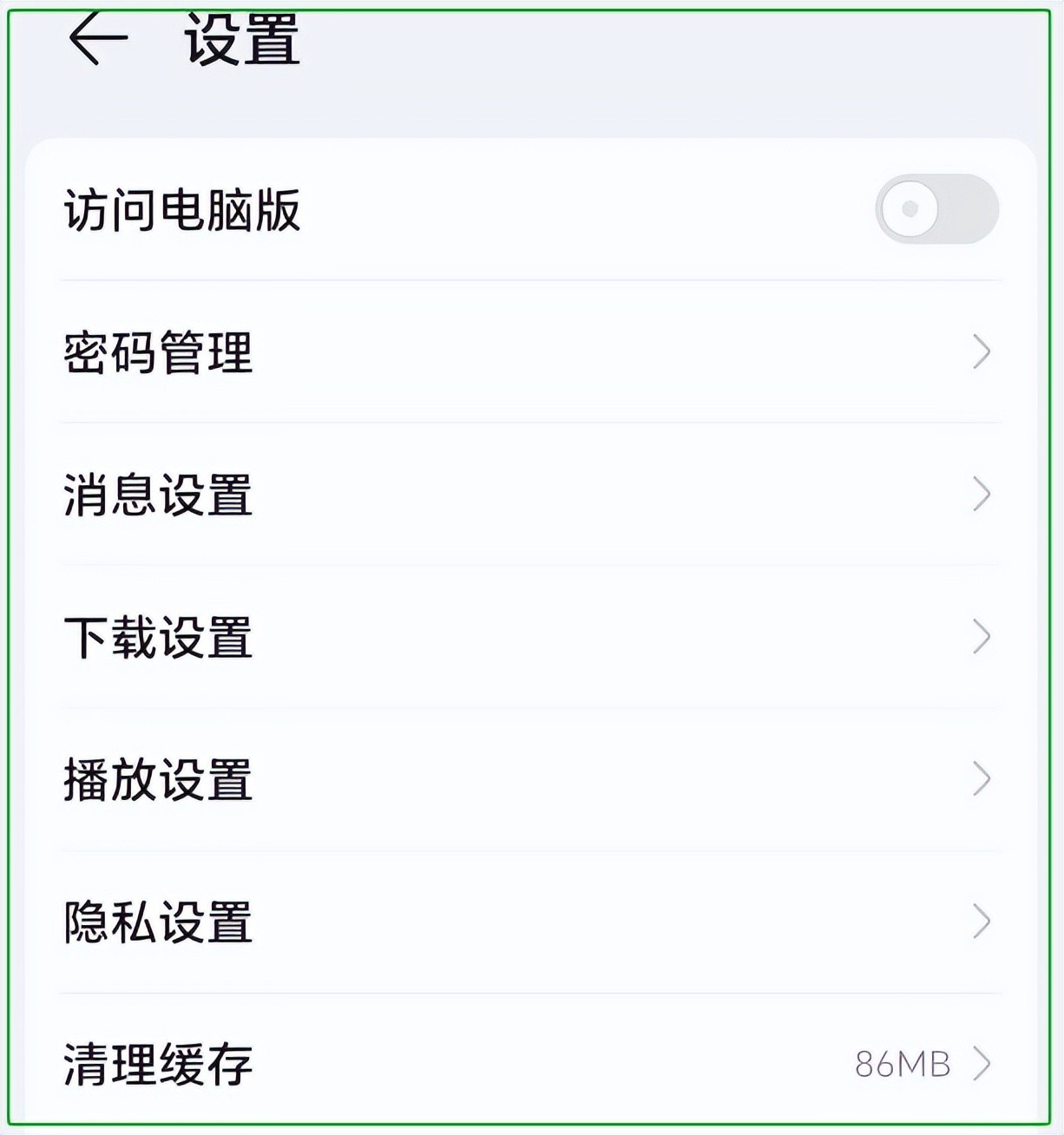 在手机上打开浏览器,在“我的”页面里,点击右上角的“设置”图标按钮,就可以找到“清理缓存”的选项。