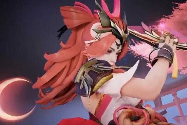 这次的动画超级的炫酷,看着庭院的上空,一轮红色的月亮悬挂,然后还伴随着樱花落下。突然强大的妖力袭来,不知火舞化身百妖之首袭来。身形超级的矫健。不知火舞就是百妖之首。