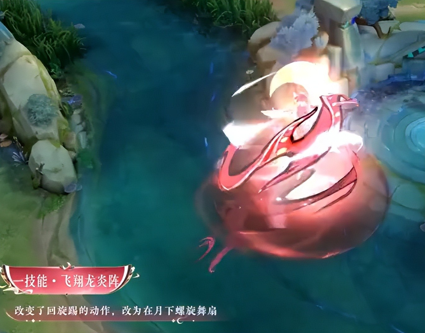 回旋踢改成了月下舞扇,感觉技能范围都变大了。和之前的一技能区别还是比较大的,不是回旋踢的动作,目前改成了月下的螺旋尾扇。一开始使用一技能有点别扭,因为原皮和魅影都是翻滚的攻击方式,这次的攻击方式采用的是回旋踢,这次的设计还是比较创新和大胆的。有一种攻击范围都增加了的错觉。释放技能还是比较清晰,特效十分的华丽,技能颜色的局内辨识度很高,增加了技能清晰度后,命中率也会随之提升。