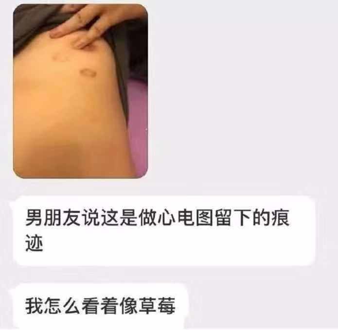 在男朋友的胸口发现一个草莓,他说是做心电图留下的,可信吗??