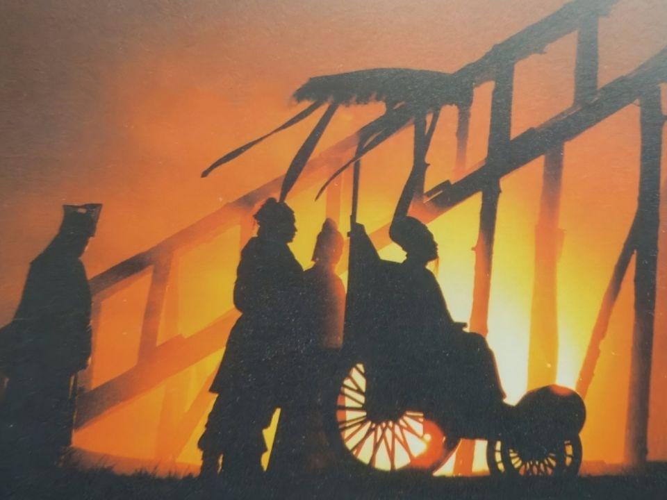 在色调上,抗战时期,该剧采用了青灰的色调,为冬日的荒原上增添了一丝肃杀之气,而到了抗战胜利之后,又使用了土黄色,充满了浓浓的怀旧气息。