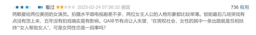 只凭几句台词和对女友的辱骂性聊天记录,就试图勾勒女性受困于亲密关系的困境,实在力有不逮。