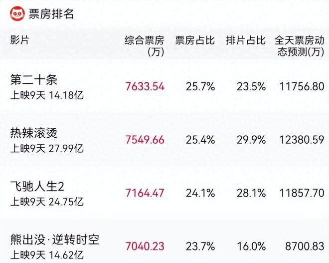 目前该片最新票房预测已经上调到了 24 亿票房,但我认为,还是太保守,30 亿,也就是接近追平《飞驰人生 2》的最终票房,将和《热辣滚烫》的最终票房差距缩小到 10 亿左右,才是该片应有的落点。